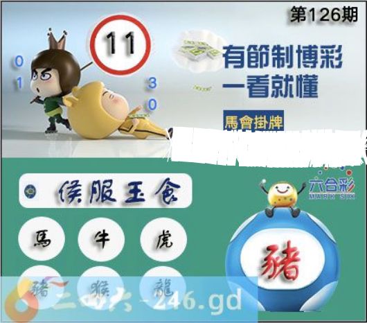 2025年126期正版彩图挂:11 爆:猪 挂牌成语:侯服玉食 挂牌出肖:马牛虎猪猴龙