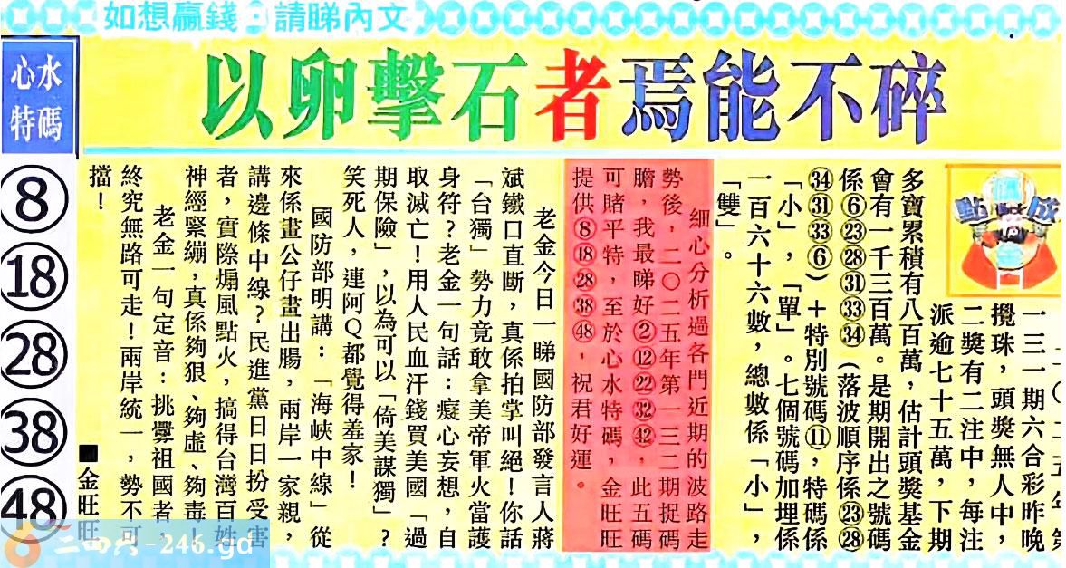 132期:金旺旺信箱彩民推荐→→《成見誤人要看清》