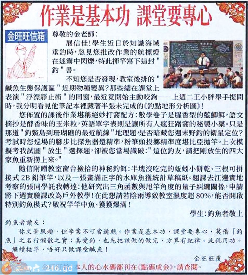 2026024期024期:金旺旺信箱彩民推荐→→《作業時基本功,課堂要專心》