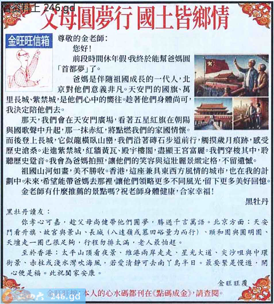 2026034期034期:金旺旺信箱彩民推荐→→《父母圓夢行 國土皆鄉情》