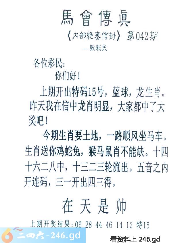 042期:首发推荐:≮馬會傳眞≯→(香港正版)
