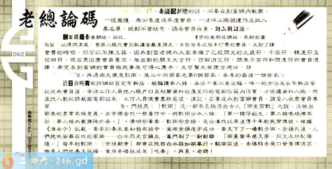 2026042期042期:彩民推荐〖貼信讀者論壇〗〖曾道人信箱〗